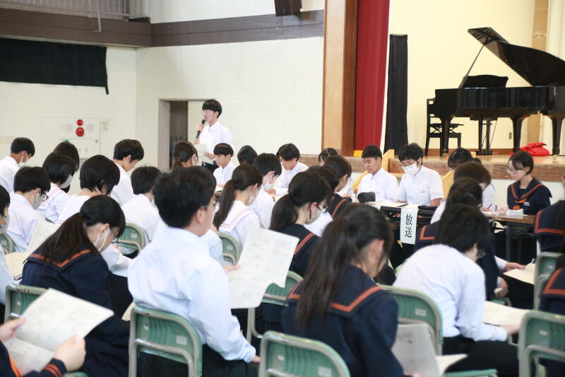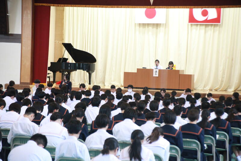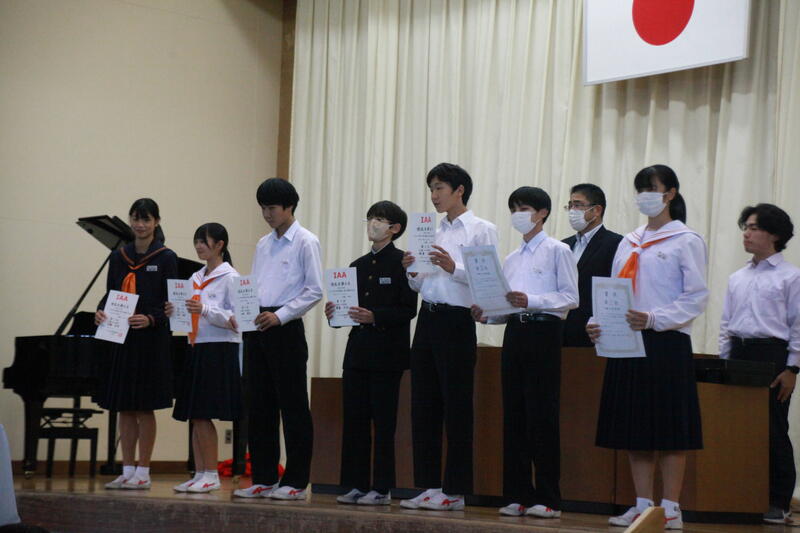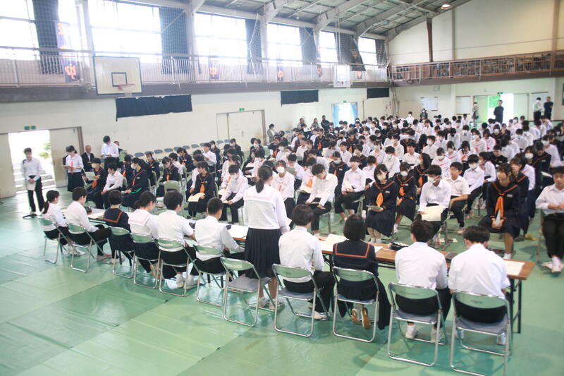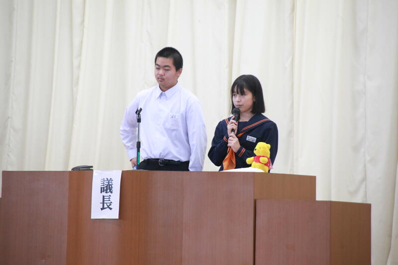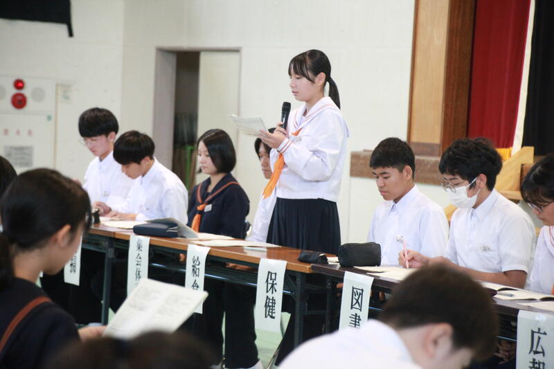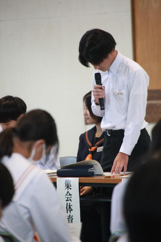 表彰、任命のあと、後期生徒会活動計画が発表され、活発に質疑応答が行われました。校長先生から、生徒会会員は、生徒の皆さん全員ですとお話がありました。生徒の皆さんひとりひとりの活躍を期待しています。