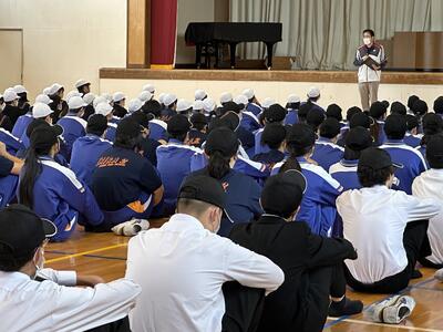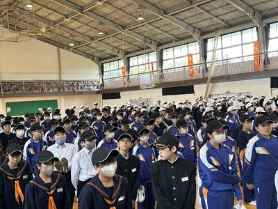 10月28日(月)、火災を想定した避難訓練が行われました。話をせず、整然と避難することができました。