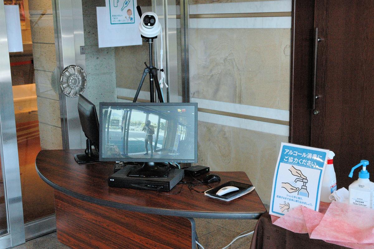 玄関口を入る全ての方に、サーモグラフィーによる検温が行われています。