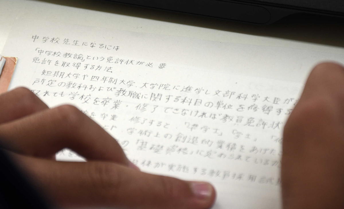 生徒たちがそれぞれに関心のある職業について、インターネットで情報を収集し、調べたことや自分の考えが伝わるように、紙面構成を考えてまとめます。