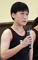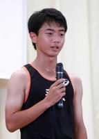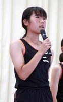 生徒会長の藤社穂希さんから、激励の言葉があり、全校で久しぶりに校歌を斉唱(マスク着用、1番のみ)しました。