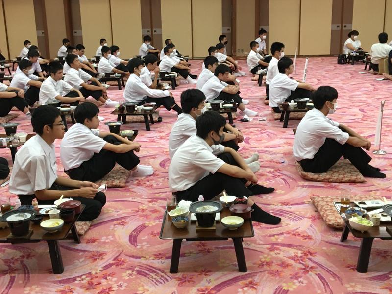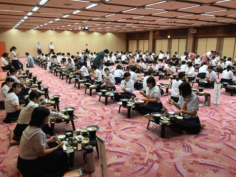 朝食会場に、全員が元気に集合しました。今日は暑くなりそうです。生徒たちの体調に気を配りながら、研修を進めます。充実した研修になりますように。