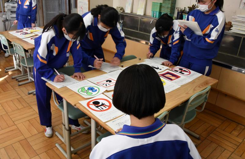 2021年2月13日 08時00分1学年の美術では、このところさまざまなメッセージを伝えるピクトグラムの制作に取り組んできました。