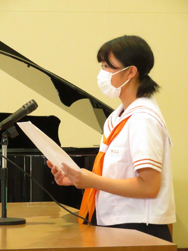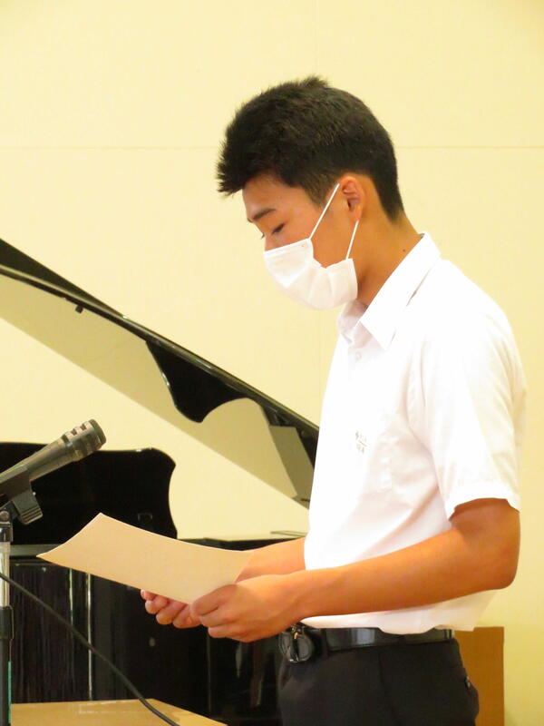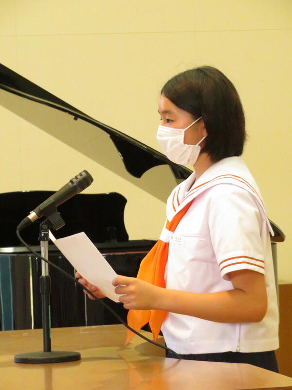 各学年からの代表者3名 及び 生徒会役員代表の発表を行いました。これまでの自分自身についての反省とともに、今後に向けた目標や思いを発表しました。