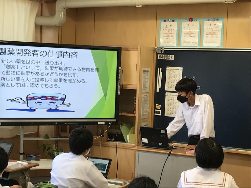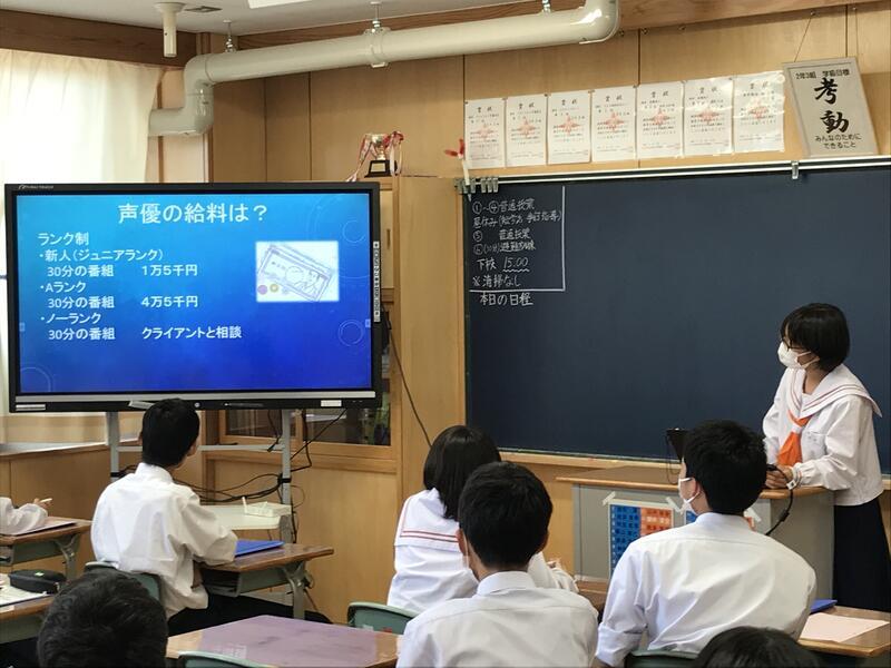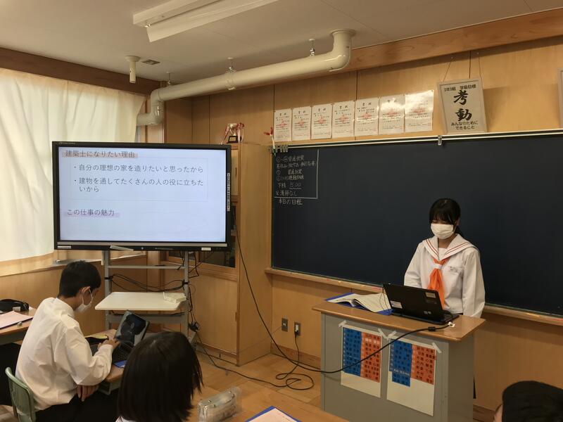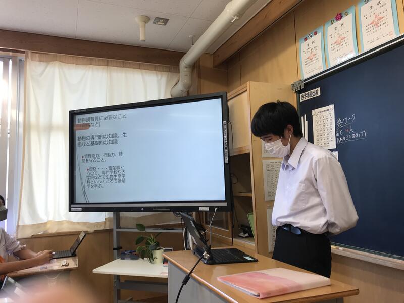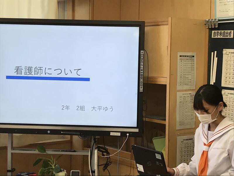 2022年9月28日 13時49分これまでの総合の時間では、職業について調べてきました。自分に合った職業がいくつか候補になり、その一つをプレゼンテーションソフトウェアを用いて発表しました。