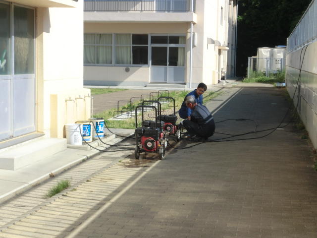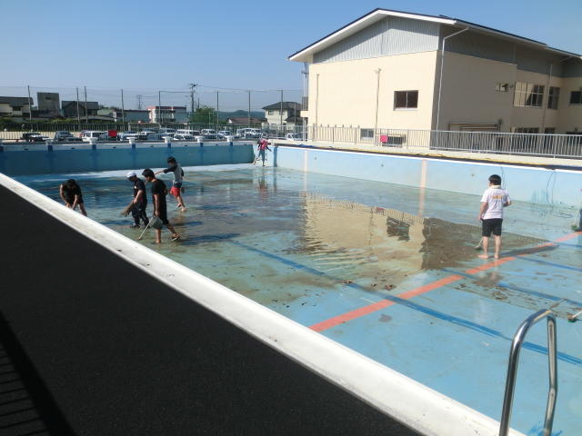 2019年5月26日 09時00分 本日5月26日(日)PTAの奉仕作業の一環でプール清掃が行われました。男の方々と先生方、さらには例年協力してくださいっている地域の方々でプール清掃を行いました。