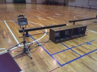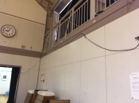 体育館のメインアンプの後ろ側です。全ての音響はここを通って