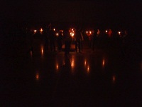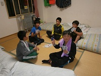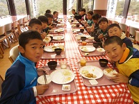2017年10月11日 17時09分 1日目の夜の活動は「ナイトハイキング」と「キャンドルファイヤー」です。「ナイトハイク」は交流の家の周りのコースを歩きました。昼とは全く違った夜の森を楽しむことができました。体育館で行った「キャンドルファイヤー」では、ろうそくに火をともしたり、歌やゲームをしたりしました。連帯感や友情を深めることができたと思います。夜の活動が終わると、入浴したり部屋でくつろいだりして過ごしました。班長・副班長の話し合いもありました。