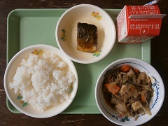 2017年10月12日 14時41分ごはん、牛乳、さばのみそ煮、ぶた肉のうま煮 です。