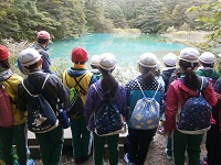2017年10月12日 14時53分 2日目の朝は「朝のつどい」に参加し、朝食後に退所式を行いました。お世話になった交流の家の先生にお礼を述べました。交流の家をあとにし、「五色沼探索」に向かいました。五色沼では、各クラスごとにガイドさんの説明を聞きながら、各沼周辺を散策しました。裏磐梯の自然を十分満喫し、帰路につきました。