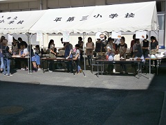 2017年9月30日 11時01分 現在、PTAバザーが行われています。PTAの各学年ごとに、食べ物や飲み物を販売しています。体育館の中では、各家庭からご協力いただいた物品の販売も行っています。まだ、来校されていないみなさんは、どうぞおいでください。