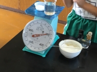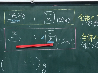 水100ミリリットル+食塩20㌘(カップやビーカーの重さも入れて)