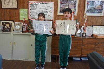 「いわき市明るい選挙啓発ポスターコンクール優良賞」のMさん、「国保健康ポスターコンクール金賞」のOさん、おめでとうございます。