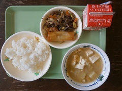 2017年7月10日 12時24分ごはん、牛乳、ごもくはるまき、ごもくきんぴら、じゃがいものみそ汁 です。