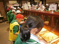 夕方、「夕べのつどい」が行われ、交流の家を利用している各団体の紹介がありました。平三小の紹介を上手にしました。つどいが終わり、食堂で夕食をとりました。