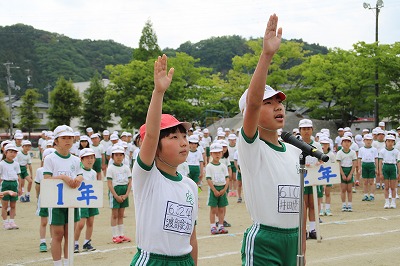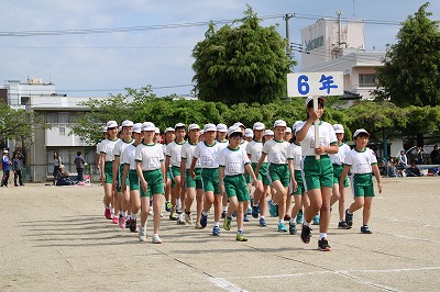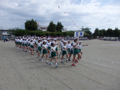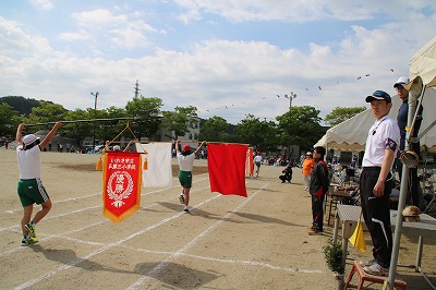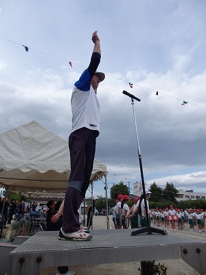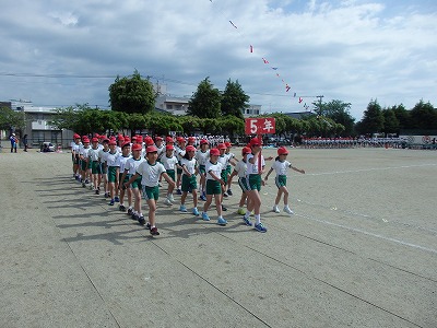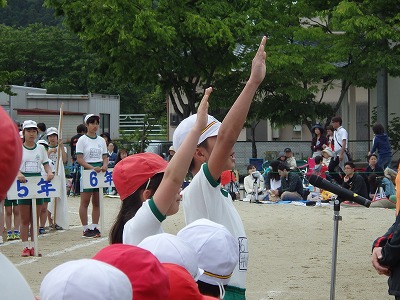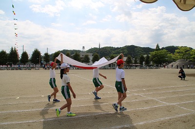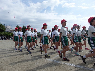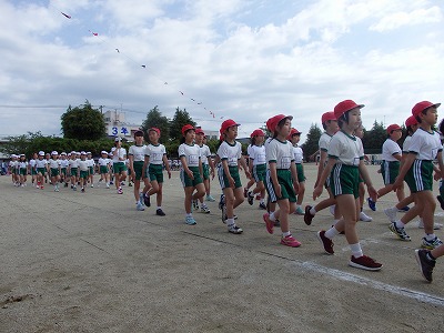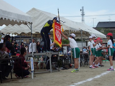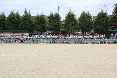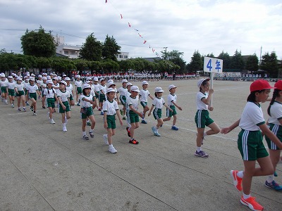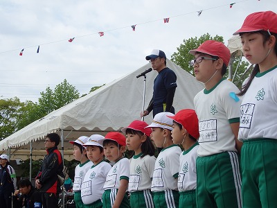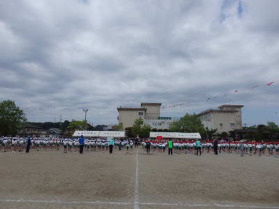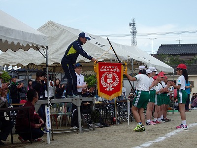 閉会式→子供たち、精一杯やったという笑顔が見られました。雨で順延の運動会でしたが、プログラムを全部実施できました。PTAの役員の方々をはじめ地域の方々へは大変お世話になり、感謝しております。