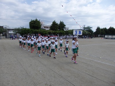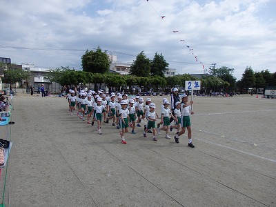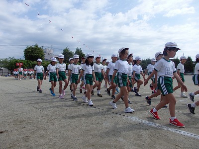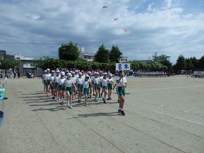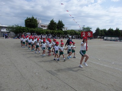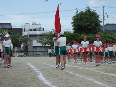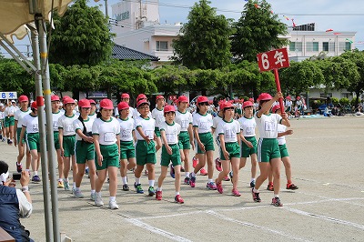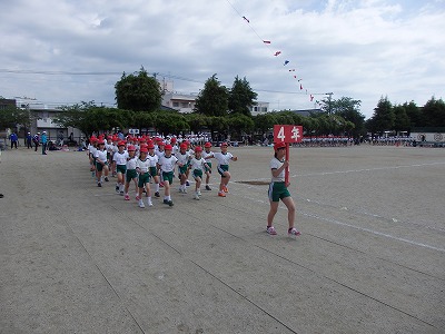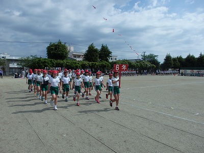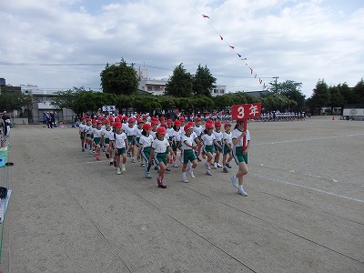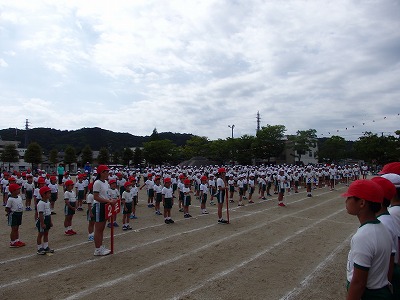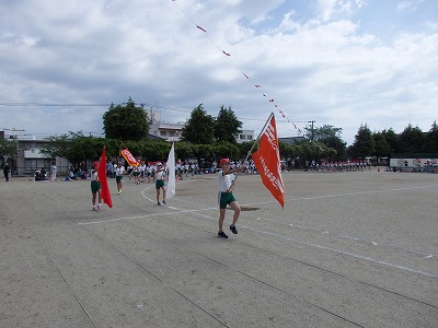 開会式→各学年の元気な入場行進、真剣な開会式、いよいよ紅白の戦いがスタートです。