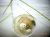 上のたまごは、水槽の中につくった網の中のカップルによるたまごです。