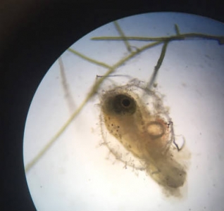 書画カメラと顕微鏡をアダプタでつないで撮影した画像