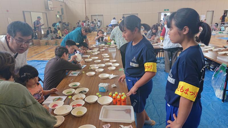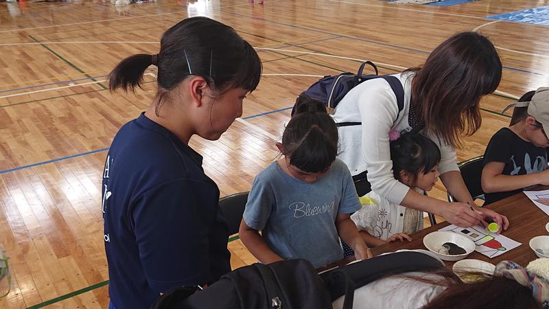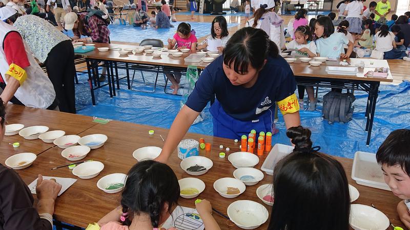 2019年6月3日 08時10分当日は130人以上の子どもが砂絵を体験。生徒たちは制作の準備や子どもの誘導、砂絵の指導まで大活躍!献身的に活動しました。
