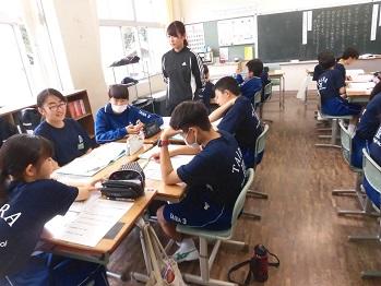 道徳の授業では、「いじめ」の題材を取り上げ、生徒たちにしっかりと考えさせながら、落ち着いて授業を行っていました。そして、生徒たちには、自分の立場に置き換えながら考える場面も見られました。