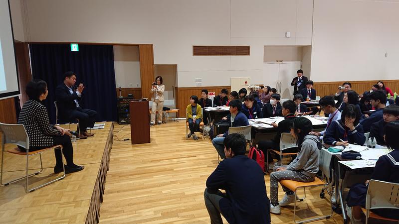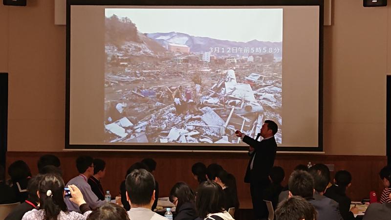 石巻・女川スタディツアー(6) 2019年5月12日 10時24分 まずは女川町長の講話と質疑応答です。問題意識の高まった生徒たちからは次々と質問が寄せられ、町長さんもひとつひとつ丁寧に答えてくださいました。