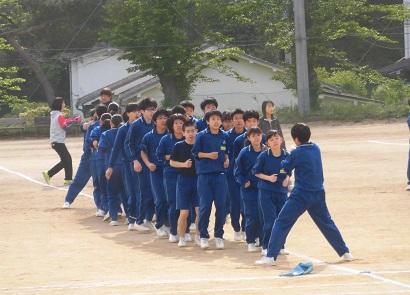 長縄で連続して跳ぶには、全員の息が合うこと。心を一つにしてがんばっていこう!