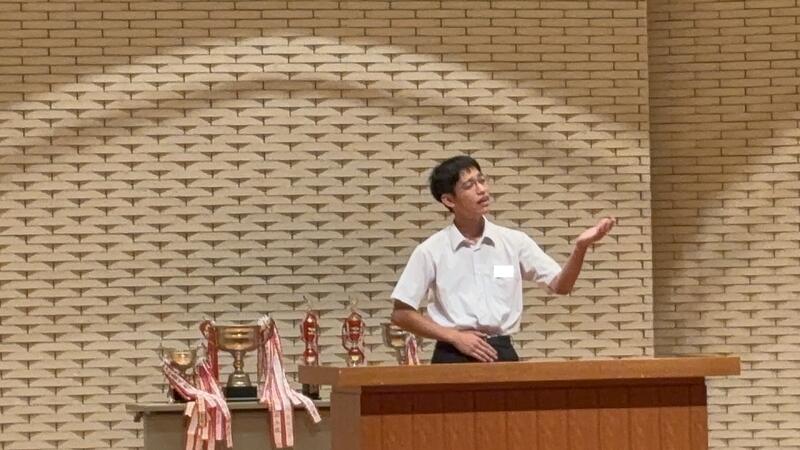 市英語弁論大会 2024年8月28日 16時53分 8月28日(水)市英語弁論大会本校、代表生徒2名が市英語弁論大会に出場しました。2人とも惜しくも入賞を逃しましたが、素晴らしいスピーチを披露することができました。