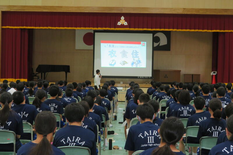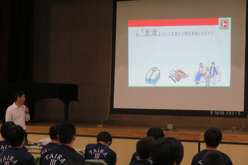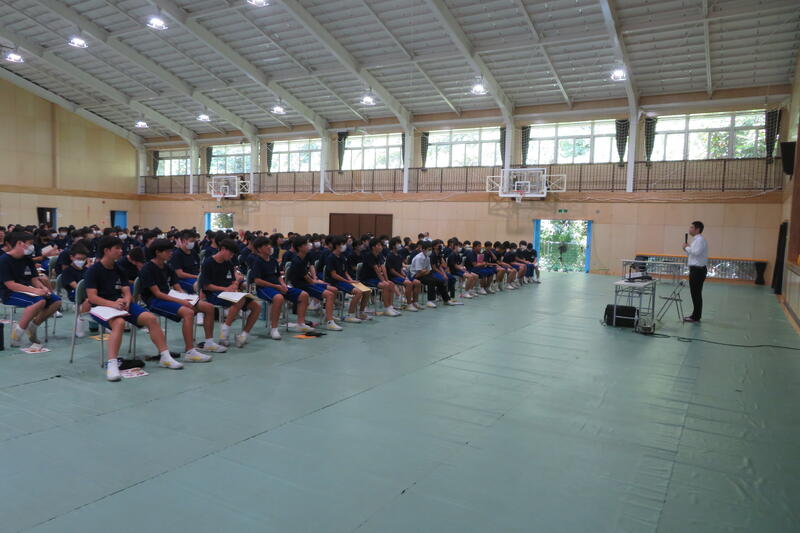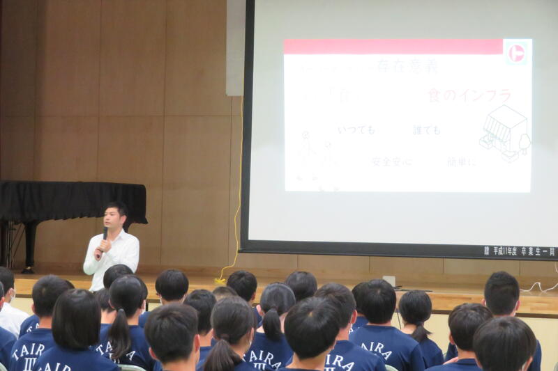 1,2学年は午前中にマルトグループホールディング 遠藤 様より「SDGsへの取組」「働く意義」について講義をいただきました。