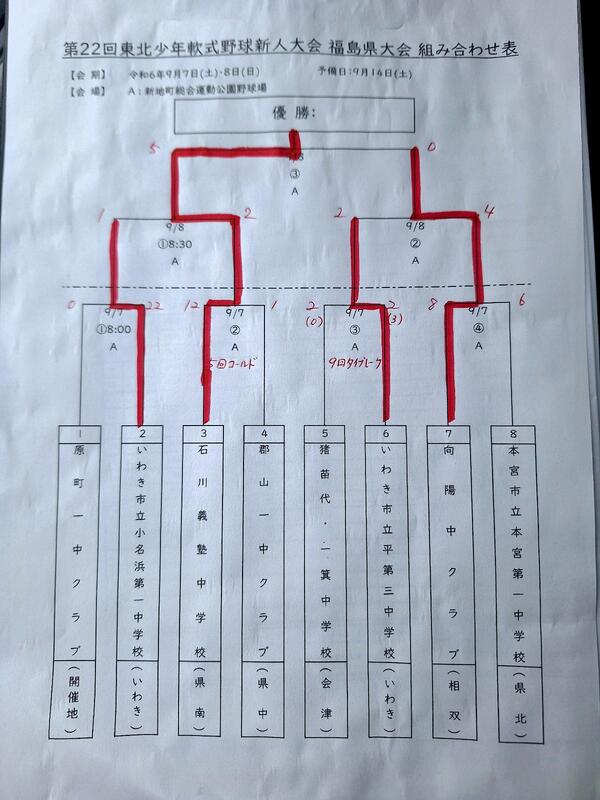 2024年9月9日 09時58分9月7日(土)、8日(日) 東北少年野球新人大会福島県大会