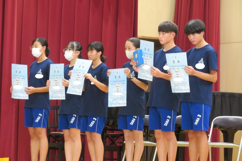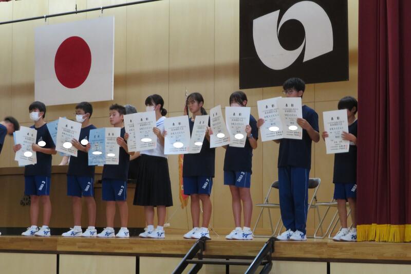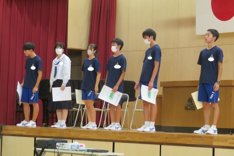 選挙の前には表彰を行い、水泳部、駅伝部、男子テニス、陸上部、女子バスケ部が表彰されました。