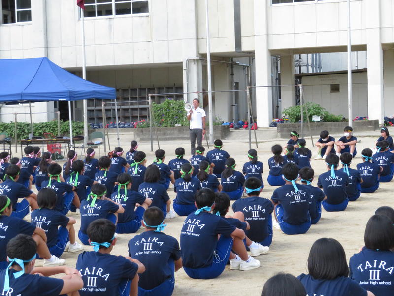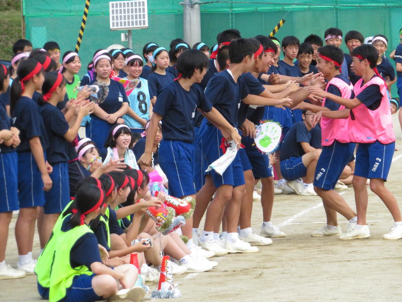2020年9月17日 17時00分9月17日(木)は学年別の活動日です。本来であれは、今日は3年生の修学旅行2日目のはずでした。修学旅行の中止が決定してから3週間。子どもたちはショックを表に出すことなく、本当に前向きに2学期の学校生活を送っています。我々教職員、特に3学年スタッフは、そんな子どもたちと思い出に残る、そして子どもたちの絆が深められる行事ができないかと考え、子どもたちとともにスポーツフェスティバルを企画しました。