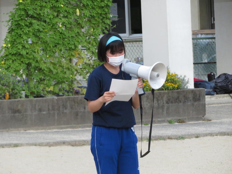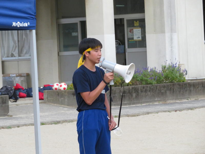 天候に恵まれた秋の1日。開会式では、学年主任と実行委員長から、「思い出をつくる」、「仲間との絆を深める」、「思いっきり楽しむ」という、大会の趣旨が話されました。