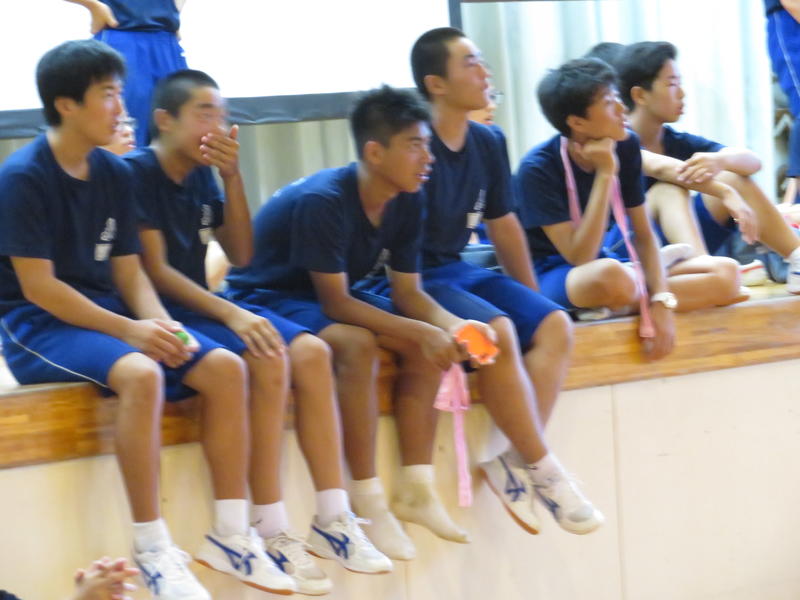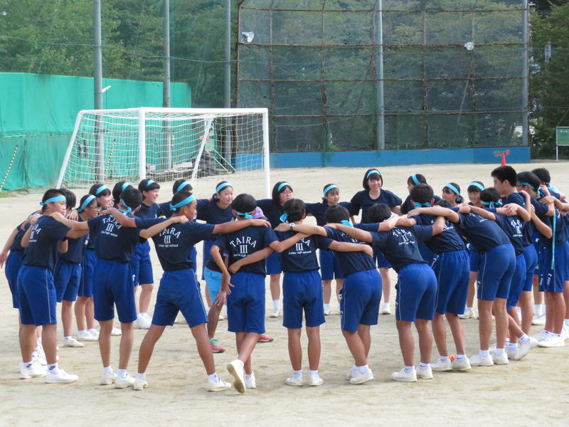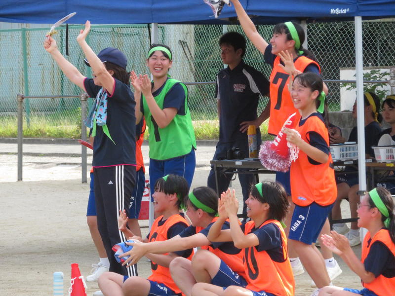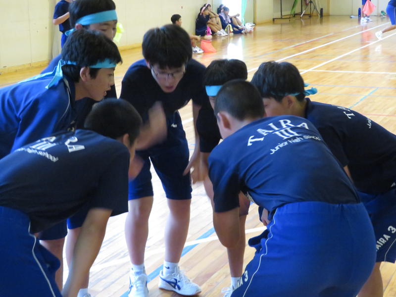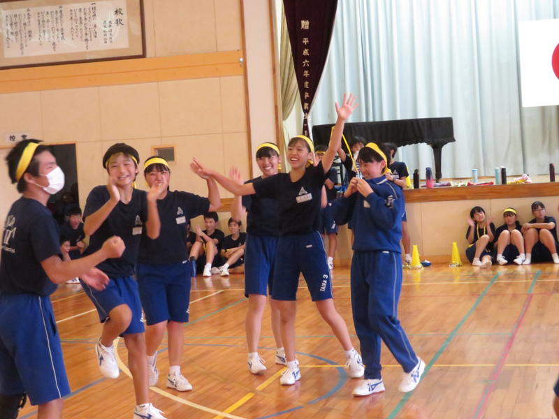 学級対抗の行事であり、もちろん勝利を目指して全力プレーを繰り広げたわけですが、どのクラスも笑顔にあふれ、失敗しても声をかけ合い、たとえ敗戦しても充実感の感じられる表情が見られました。まさに、「全力で取り組み、仲間との絆を深め、思いっきり楽しみ、よい思い出となる1日」でした。