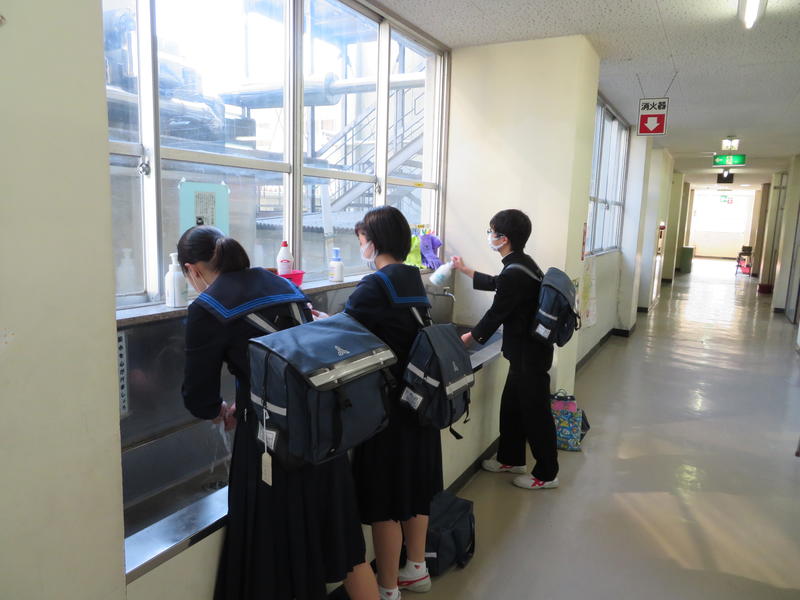 1 全校生徒が登校し、日課表・時間割による活動となります。朝の検温と記録表への記入、マスクの着用、可能な限り3密を回避した教育環境の配慮、換気や共用部分の消毒等は、今後も継続します。