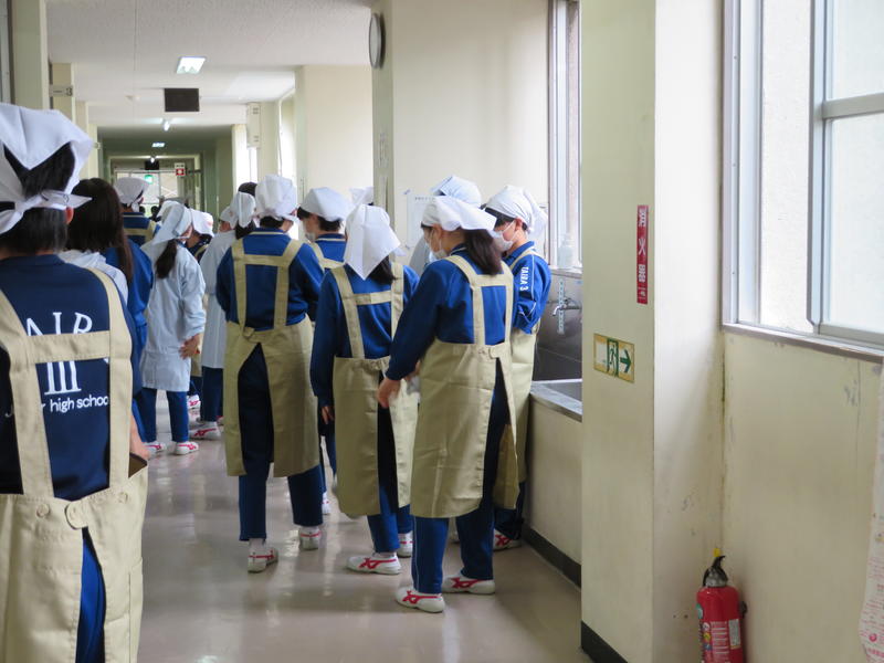 小グループごとに手を洗って並び、自分の給食を準備します。これまでよりも時間がかかりますが、仕方ありませんね。