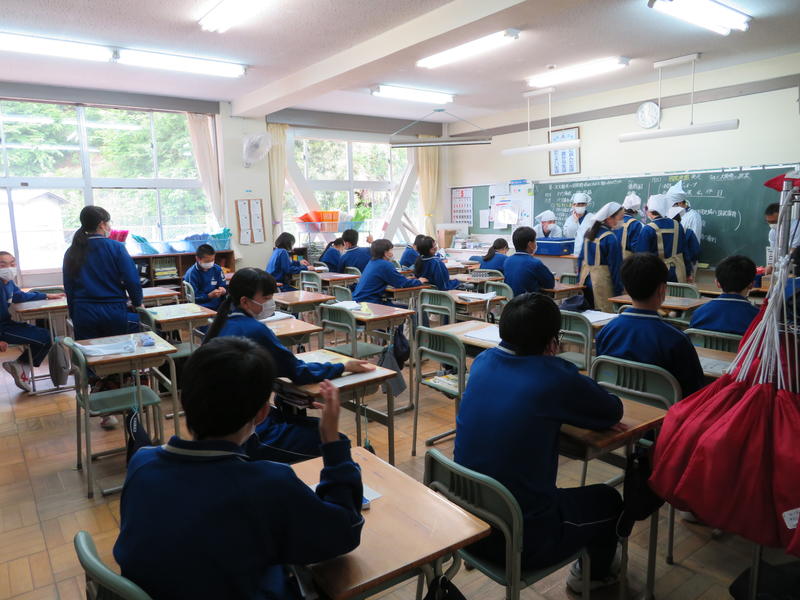 他の生徒は、配膳準備が整うまで自席で待ちます。