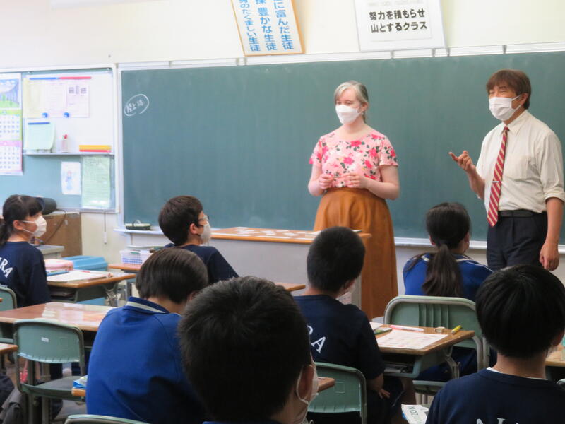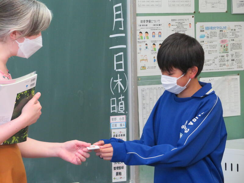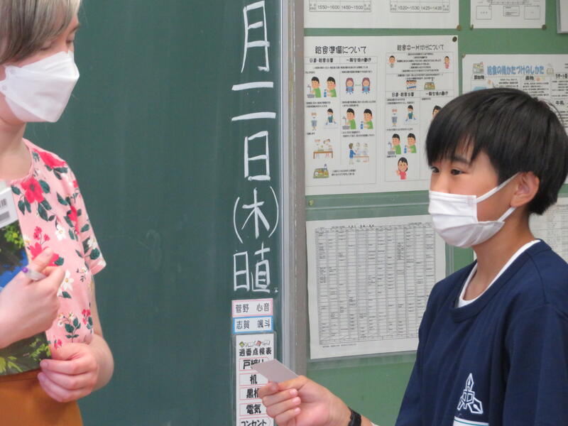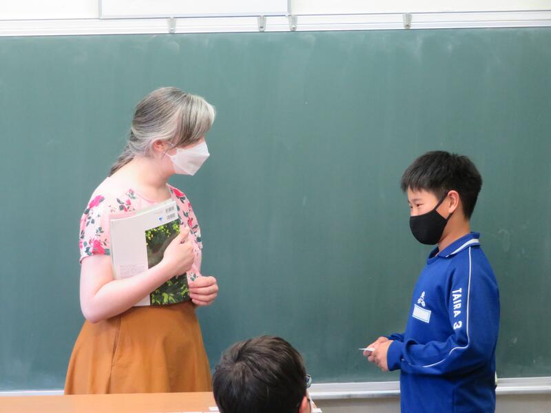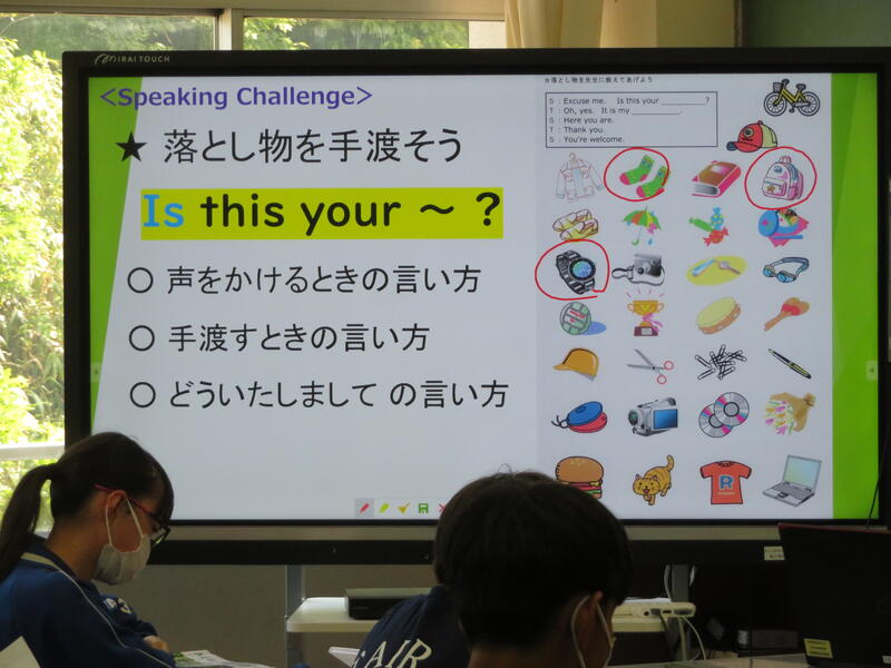 1年生の授業では、落とし物を手渡すときの会話の練習をしていました。