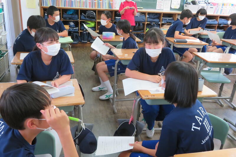 2022年7月1日 07時55分スクールカウンセラーの先生にコミュニケーションについての講和をしていただきました。昨日は1年4組と1年5組で実施していただきました。
