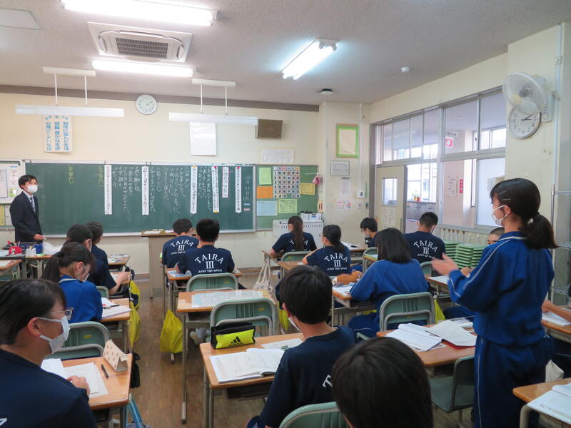 3週間、ありがとうございました。うまくいかなかった点も多々ありましたが、親切に優しくご指導いただいた先生方、気軽に話しかけてくれた生徒の皆さんには感謝してもしきれません。短い期間ではありましたが、平第三中学校で教育実習を行わせていただき、本当にありがとうございました。