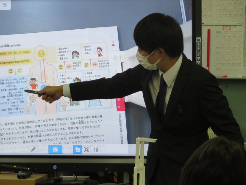今日は、保健体育科の教育実習生が1年3組で保健の授業を行いました。