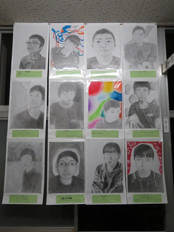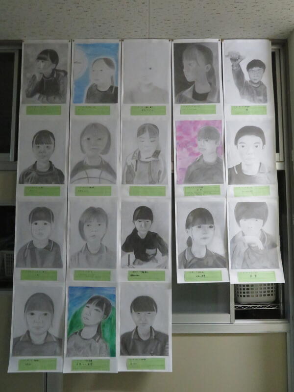 今回は3年5組・6組の作品です。こちらも個性的な作品が並んでおり、「あ! これは〇〇さんだ」と思える作品が多いですね。