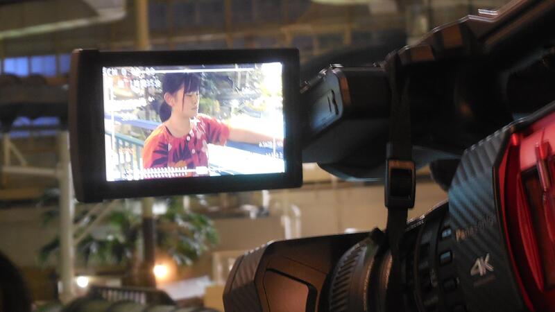 カメラの位置やアングルが決まったら、いよいよ撮影です。2シーンを2テイクずつ撮って、緊張しながらのステージでの撮影が終了しました。