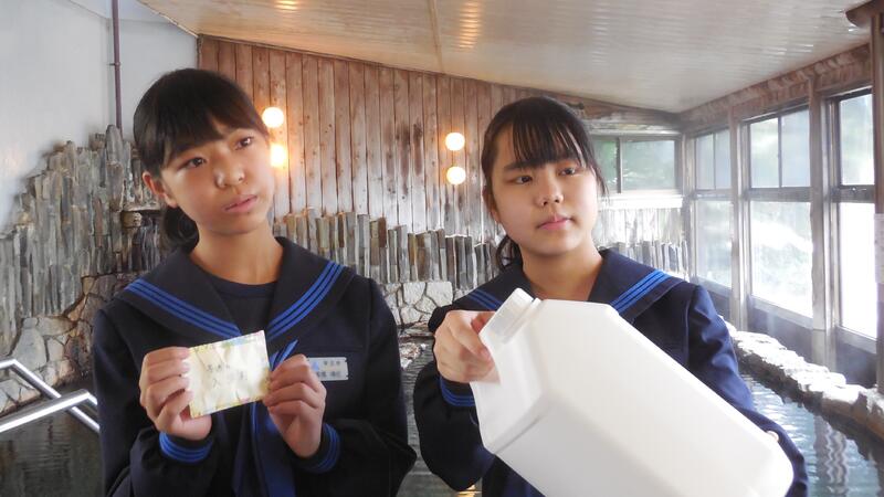 いわきブランドの入浴剤発売に向けてPR動画を制作している平三中のキャリア教育推進委員会。今週末は「いわきといえば…」ということで思い浮かべた市内の名所をバックにしての撮影です。