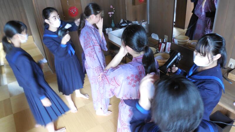 時折雨が降ることもありましたが、出番のない生徒がリハーサルが終わった生徒の髪をドライヤーで乾かしたり、カメラや三脚の水滴を拭き取ったりと、協力しながら1本の作品制作に取り組む姿が見られました。映像制作を通して学ぶべきことはまさにチームワーク! 素晴らしい作品ができあがるのを楽しみにしています。