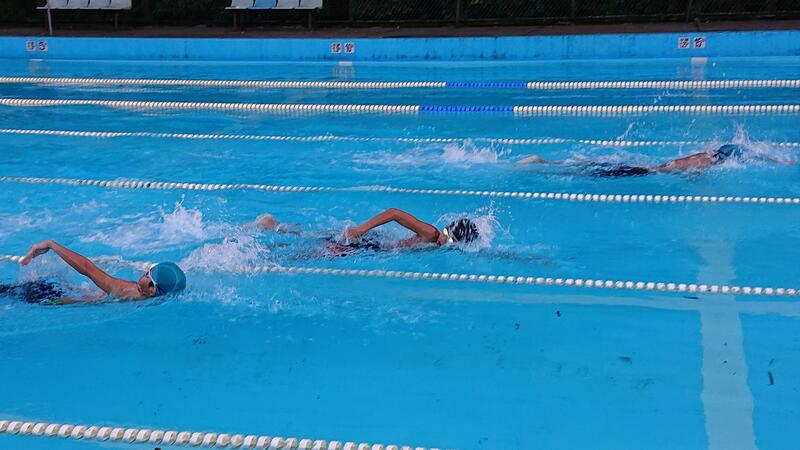 まだまだ気温も水温もプール練習には十分! …ということで9月20日(祝)も学校のプールで水泳部の練習が行われましたが、今日は久しぶりに引退した3年生も泳ぎに来てくれました。