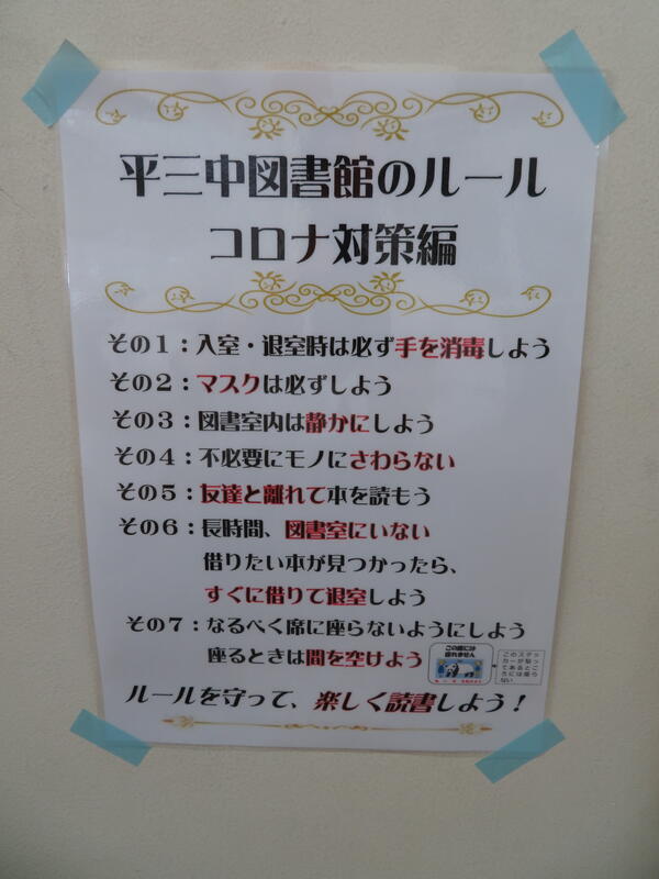 図書室は、感染症対策も含めて、ルールやマナーを守って利用しましょう。