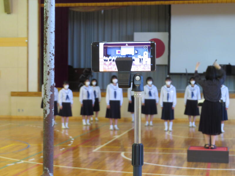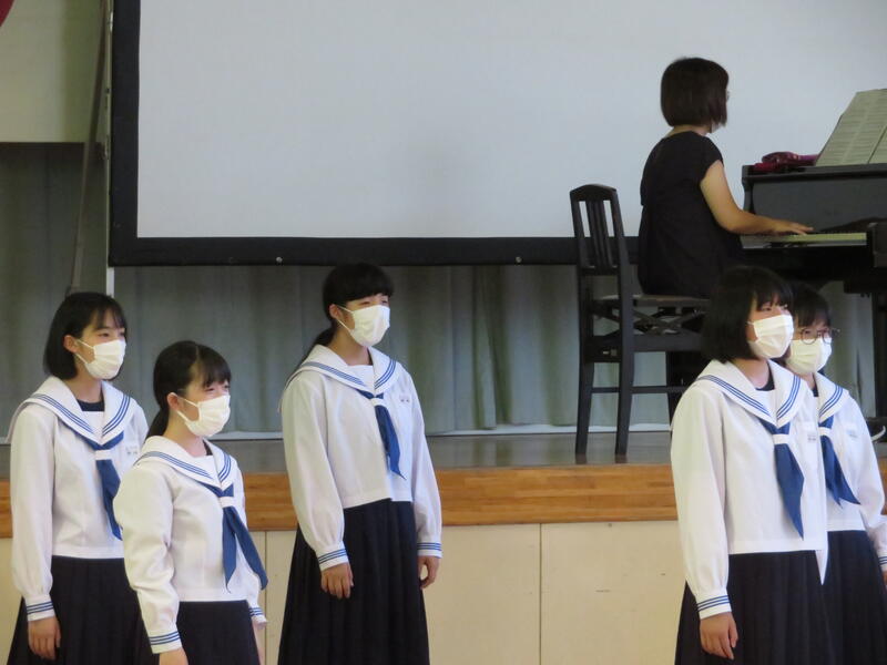 猛暑の中、録画する際は体育館のドアを閉め切り、しかもマスク着用という、過酷な環境の中で子どもたちはがんばりました。素人の目と耳ではありますが、とてもすばらしい合唱ができていたと思います。聴いていて鳥肌が立つ感覚でした!
