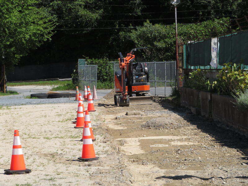 猛暑の中、作業に取り組む業者の方々の姿が! いわき市教育委員会と地域住民の方々の合意による作業です。本校の学校生活にも影響が生じます。詳細については、後日お知らせします。