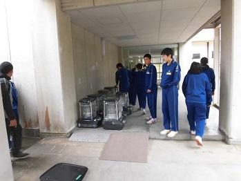 先週ストーブの設置を行いましたが、今日の昼休みは給油を行い、しっかり作動するかどうかの点検を行いました。